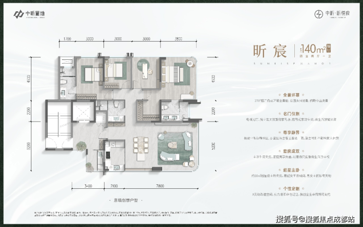 建面约140㎡四房三卫 全景视野舱,参照高端豪宅标准打造