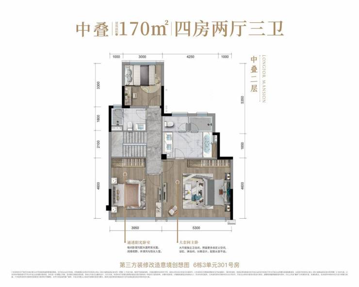 中叠约170㎡四房两厅三卫