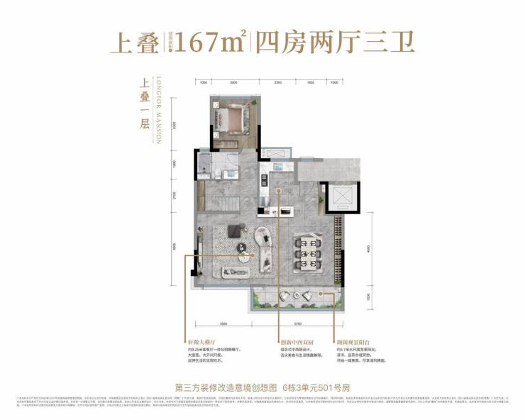 上叠约167㎡四房两厅三卫