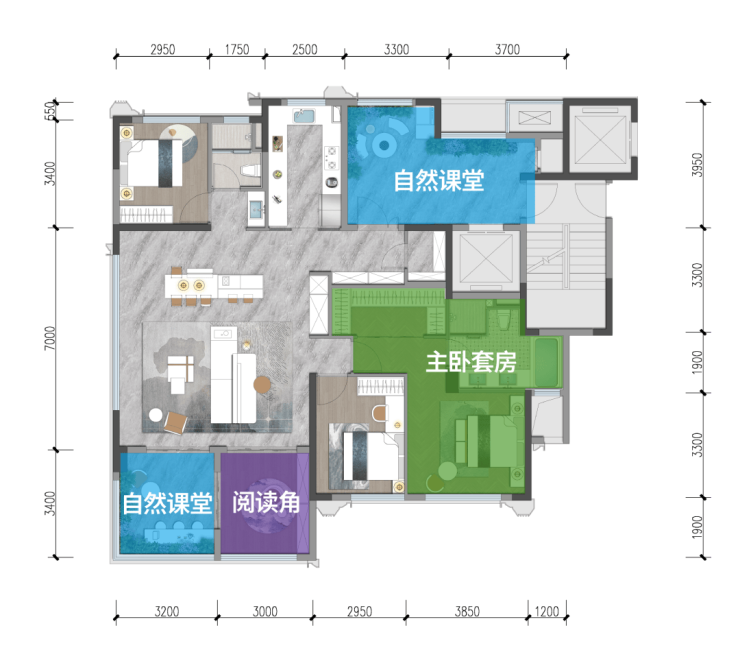 下叠约198㎡产权面积通过创新设计,实际使用空间可达超约600㎡。这种空间延伸不仅是数字的增长,更是生活方式的质变:
