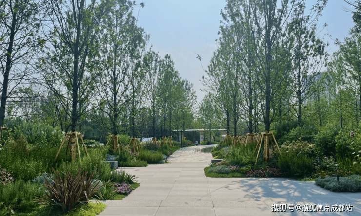 上璟润府以约160亩生态公园为基底,匠心营造1公里溪谷景观带、1.5公里蓝花楹主题大道、3.9公里林荫步道系统,创新打造溪谷十二景、四季主题花园、自然教育基地、全龄运动空间等特色配套,让每次归家都成为沉浸式的公园漫游体验。