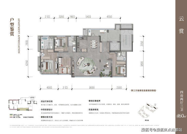 (9米开间,超宽视野,100米楼间距,可做五房,实得约180平米)