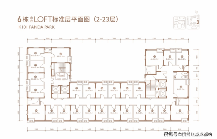 LOFT建筑面积:套一约24㎡,套二约34㎡(可售整层,5栋单层面积约709㎡ ,6栋单层面积约716㎡)