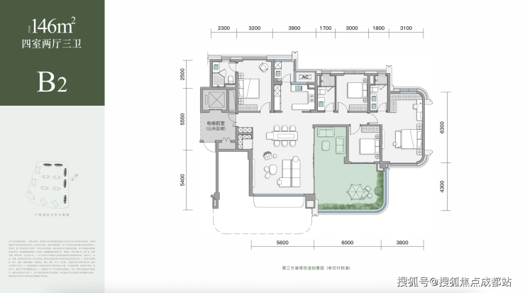 建面约 146㎡ 四房三卫(总价约 500 万起)