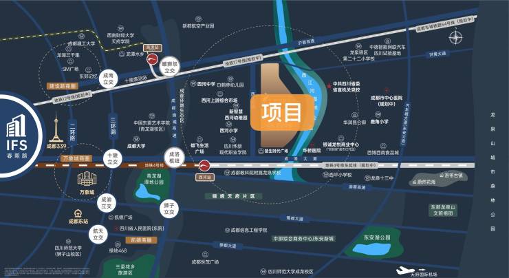 项目位于龙泉驿区西河板块,可快速链接主城核芯资源,乘成都东进战略与成渝双城经济圈东风,西河驶入发展快车道,潜力与价值正被全面激活。