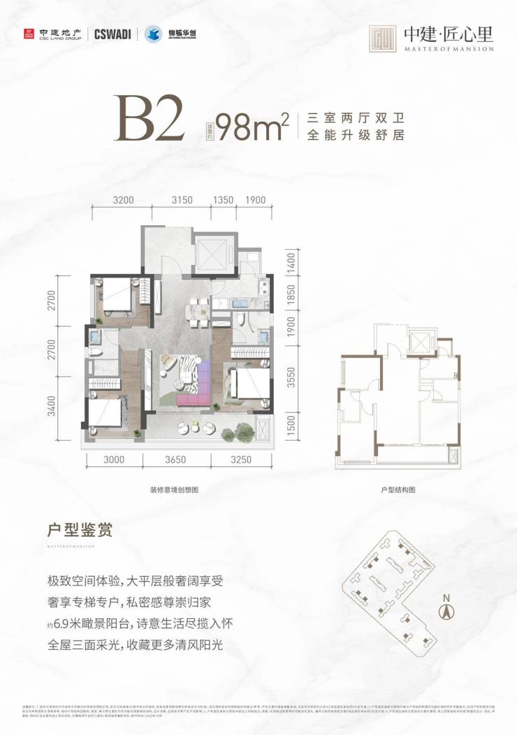 装修标准:3000元/㎡(含中央空调/新风/地暖)