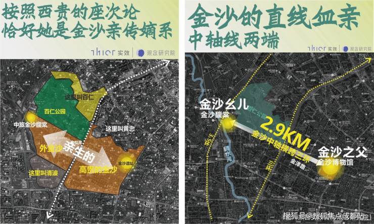 金泽路——蜀江路为轴的金沙正脉,自金沙遗址始,串联燕沙庭院、雍锦园、金悦湾、凤起朝鸣等传世奢宅环伺两侧。