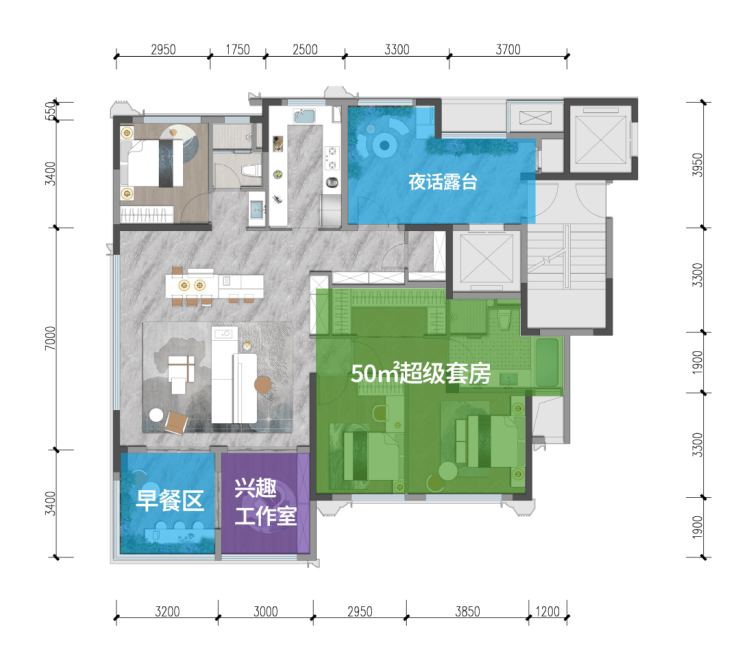 下叠约198㎡产权面积通过创新设计,实际使用空间可达超约600㎡。这种空间延伸不仅是数字的增长,更是生活方式的质变: