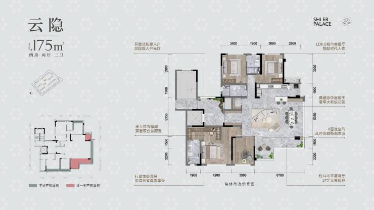 建筑面积约175㎡ 四房两厅三卫