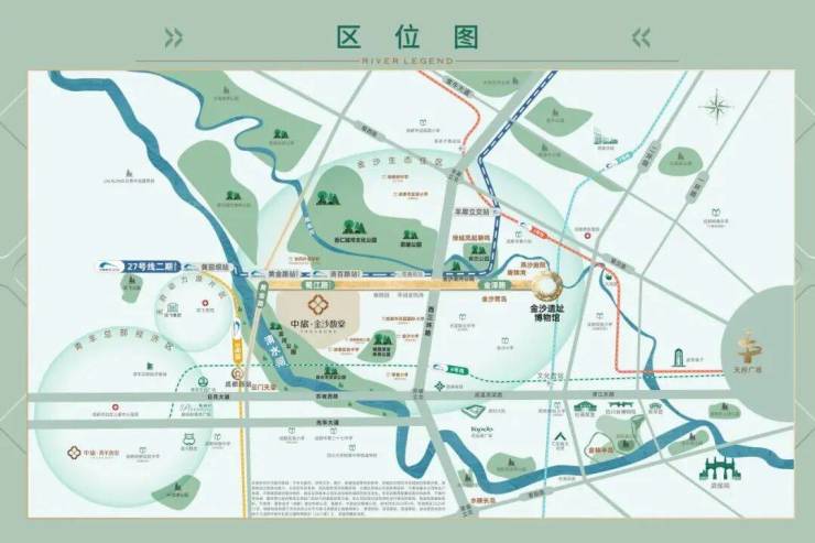 项目雄踞金沙文化中轴,既承载交通枢纽功能,更凝聚深厚人文底蕴。据百度地图显示,3公里范围内分布8个地铁站点,距规划中的27号线二期清百路站仅约300米。目前区域内同时满足一线临河与地铁便捷的住宅项目,唯中旅·金沙馥棠独有。
