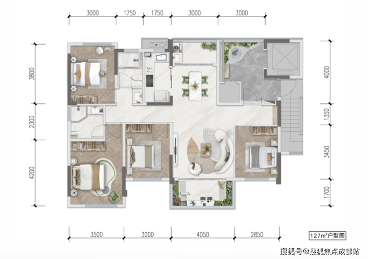 127㎡套四双卫户型