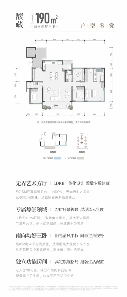 三重立体空间会所体系:约6400㎡实景示范区、地下会所配置;5栋全架空泛会所;全龄段功能空间。