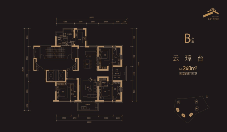 240㎡五房两厅四卫(270°观景阳台,独立家政间)