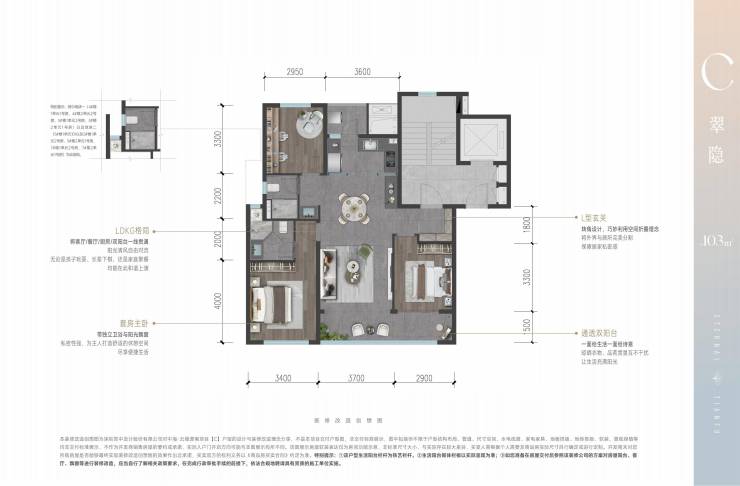 C户型 约103㎡三房两卫(洋房)