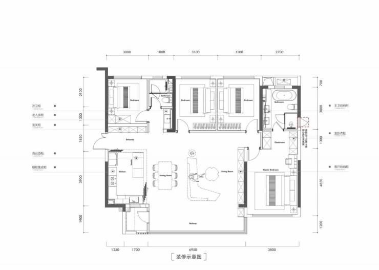 B户型/建面约174㎡四室两厅双卫