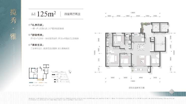 双面观景、双套房设计、约25㎡豪华主卧、约42㎡LDKB一体化社交空间。每个功能区都高度匹配深度改善的居住标准,体验极致的品质生活。这也是武侯区目前在售新房中,唯一的2T2户的125㎡四房户型。