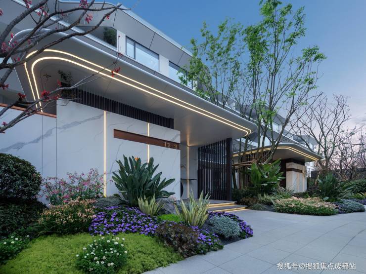 4、【建筑美学革新】采用双曲面弧形铝板与超白Low-E玻璃幕墙组合,配合定制化工艺细节。全景式观景阳台与U型跑道设计,树立成都住宅美学新标杆。