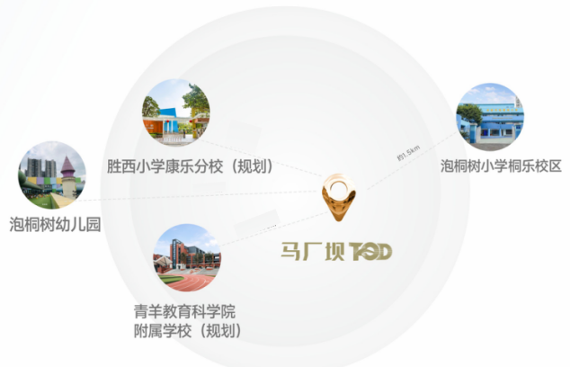 城西教育热土,周边优校紧密布局,实验小学附属幼儿园、泡桐树幼儿园(在建)、胜西小学康乐分校(规划落地待建)、泡桐树小学桐乐校区、青羊教育科学院附属学校(规划落地待建)、成都市实验小学附属幼儿园(马厂坝分园)。
