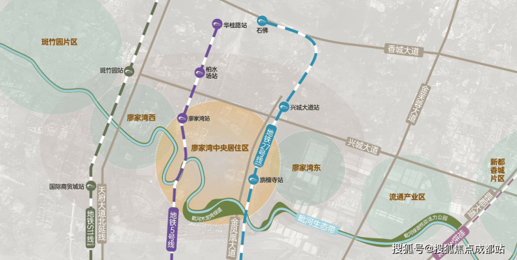 双中心之一:在《新都区国土空间总体规划》中,廖家湾与香城中心共同被确立为全区重点打造的两大城市中心之一,定位为面向未来的成北消费活力区。