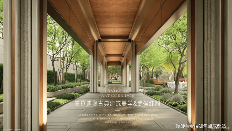 以武侯红韵为魂,让西方经典性质与在地文化相融,坚守极致理性美学,复现桐梓林经典廊柱