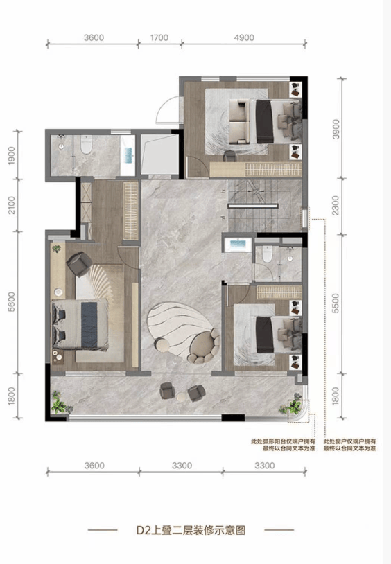 D2户型|叠拼|建面约350㎡| 五室两厅四卫