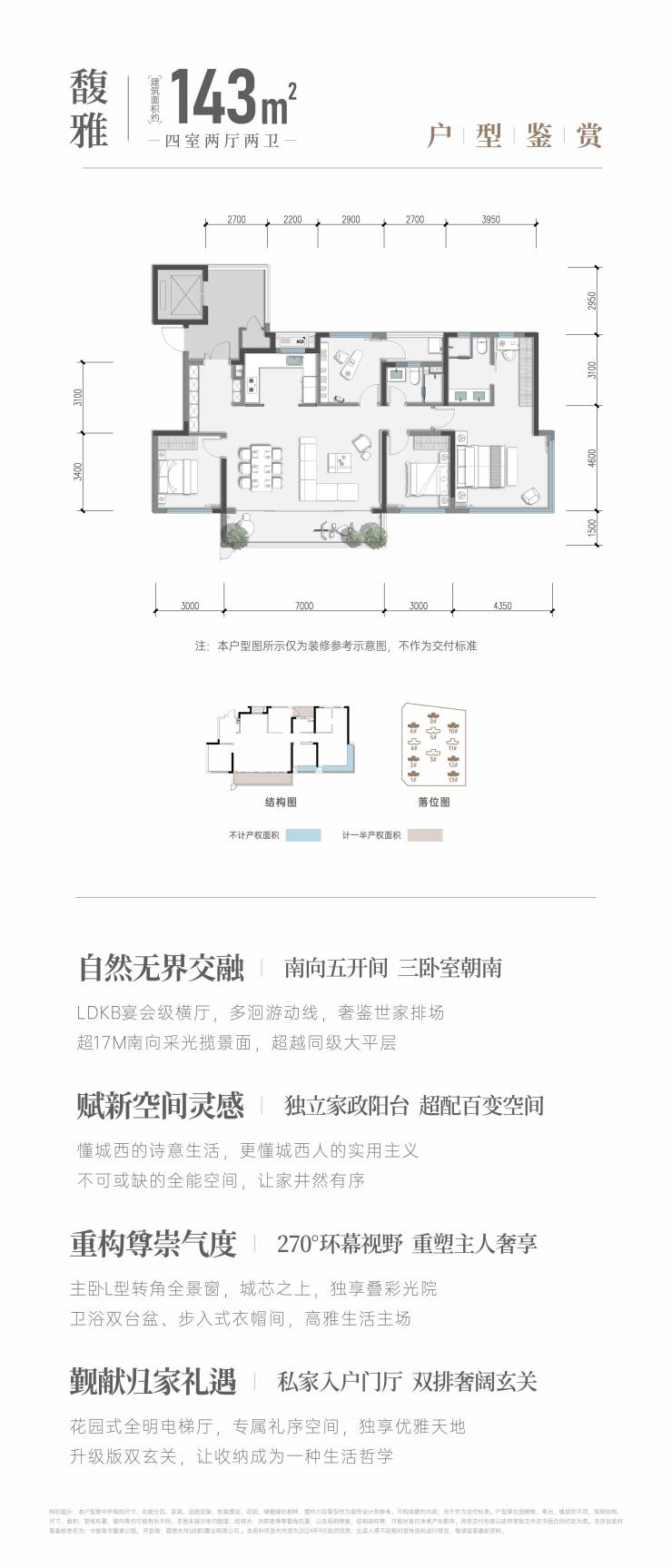 全端户纯板式楼栋,楼栋正南北朝向,全T2规划,户户主卧奢享270°环幕视野;约27-58米超宽楼距,瞰揽多层级中轴景观系统。