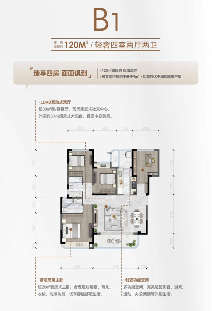 宽敞户型,精致设计,113-140m2的舒适生活空间