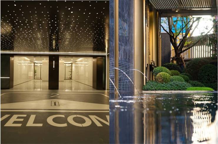 奢华品质焕新: 奢石立面、统一公区防火门及电梯按钮,304不锈钢盖板,精工细作墙地砖。