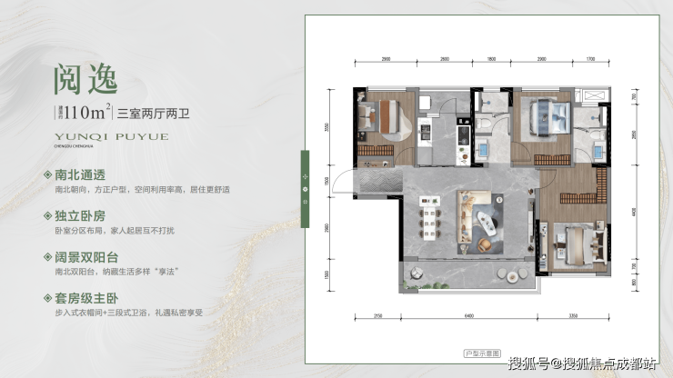 产品面积:建面约106、110㎡/套三,建面约125、136㎡/套四