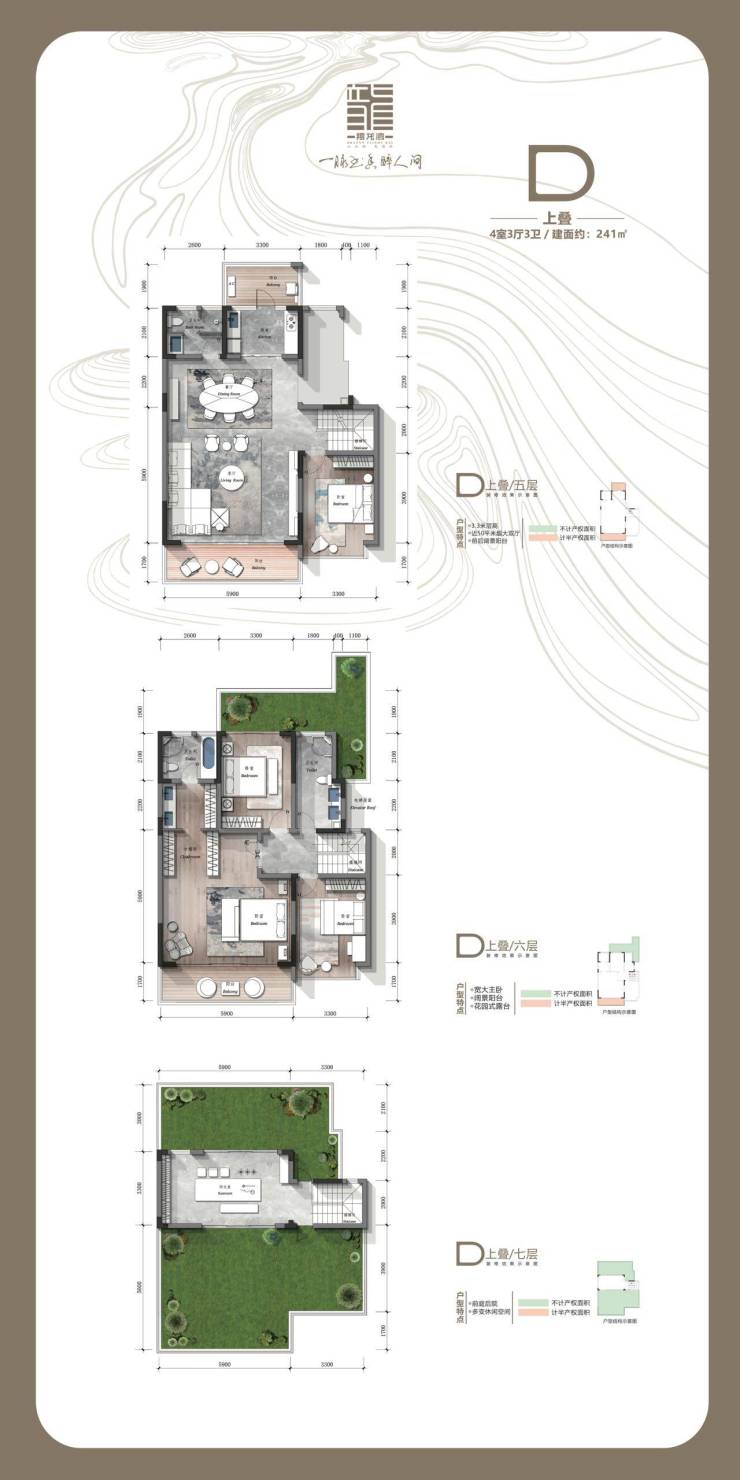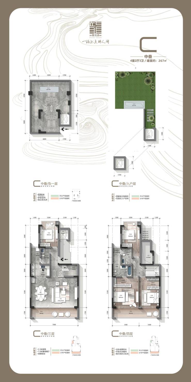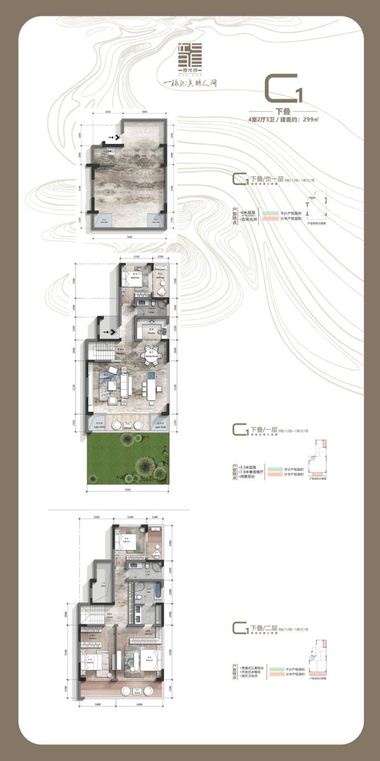 建面约410-472㎡山水双拼 建面约208-327㎡花境叠墅