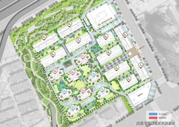 位于金牛金府一街55号,总占地约63.03亩,规划了8栋板式住宅,包括2T2小高层和高层产品,主力户型为建面约143㎡套四和建面约128㎡套三,共计304户。合同交房时间为2026年3月,物业费2.9元/㎡,由中海物业提供服务。