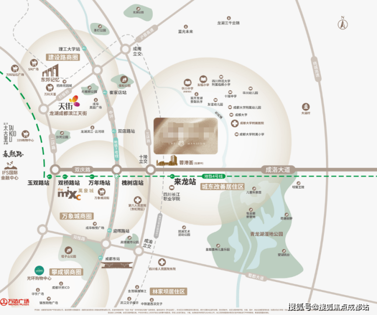 轨道交通:距4号线来龙站仅50米,1站直达槐树店枢纽,2站接驳万象城商圈,5站直抵春熙路核心区,远期规划32号线贯通全城