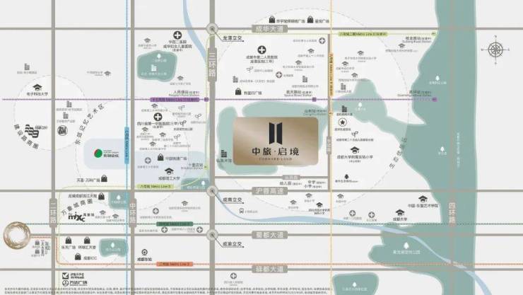 中旅启境雄踞东三环龙潭寺价值高地,该区域作为连接杉板桥、十陵、三圣乡的黄金枢纽,正迎来历史性发展机遇。随着龙潭新经济产业功能区的确立,区域配套持续升级:成都市二医院龙潭院区已正式运营;地铁8号线二期、17号线二期将于2024年贯通;龙港钢材城完成搬迁后释放大量优质土地资源;3700亩北湖生态公园构筑城市绿肺。这片集产业、交通、生态优势于一体的新兴住区,正在书写城东人居的新篇章。