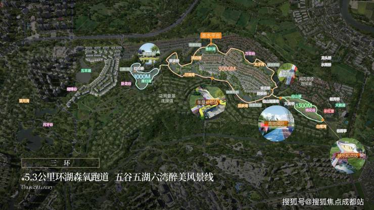 三环(约5.3公里有氧跑道),两中心(艺展中心、市民生活中心),一广场(约6万方优品道广场),更有十八大社群,丰盈业主生活。
