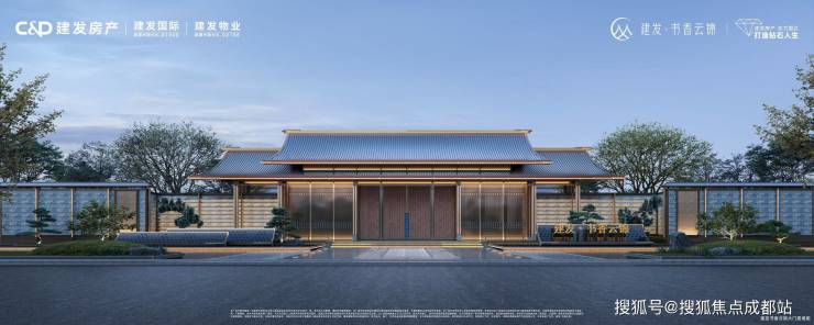 建发·书香云锦是由世界500强建发集团(2023年排名第69位)旗下建发房产打造的高端新中式住宅项目,定位为“低密低容纯改大盘”。项目位于成都青羊新城核心板块——蔡桥街道,占地约107亩,容积率2.3,建筑密度19%,规划20栋13-17层纯板式小高层,全部为2梯2户设计,得房率高达91%-94%,是主城区罕见的百亩低密大盘。