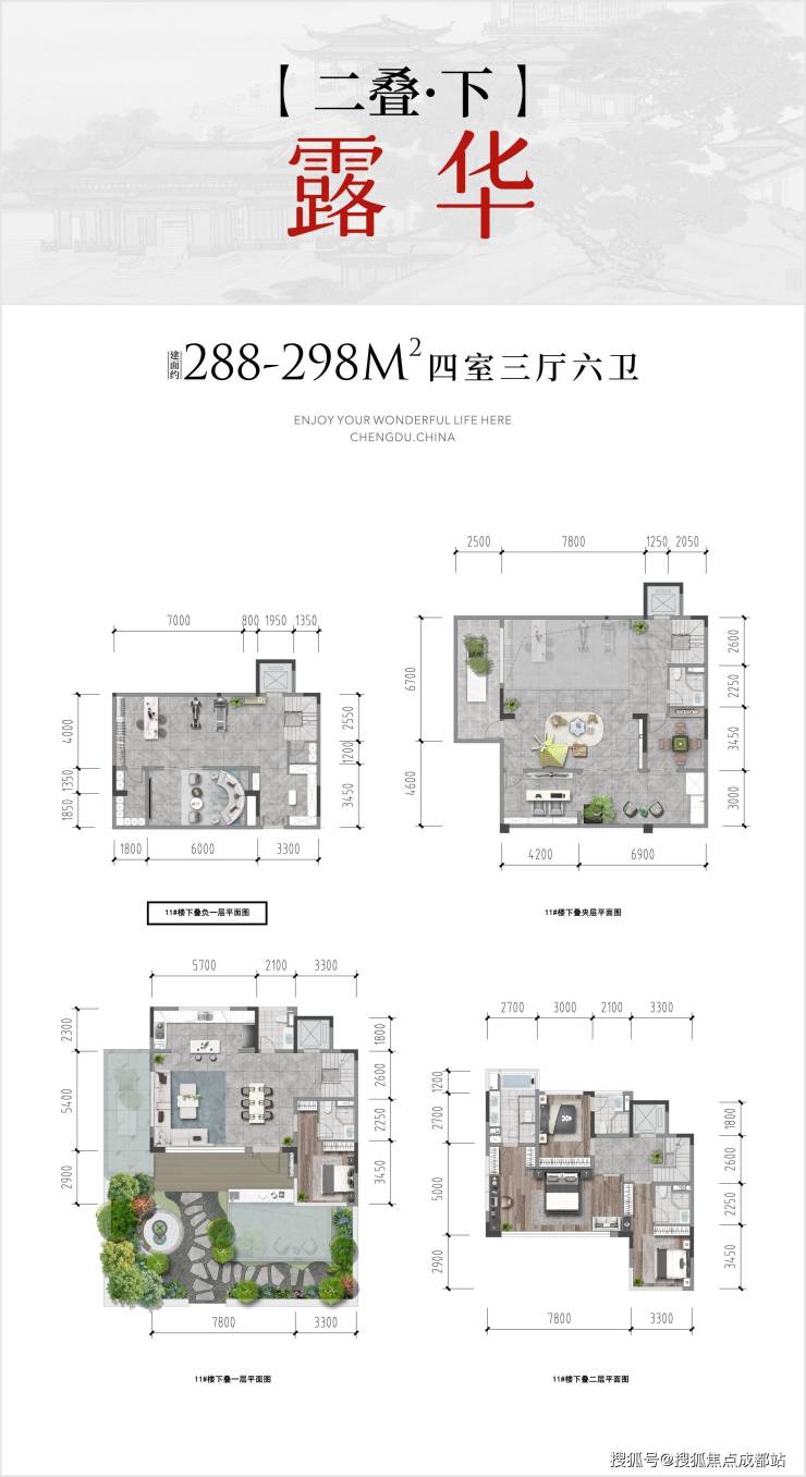 【两叠】下叠 四室三厅六卫 | 约288 - 298㎡