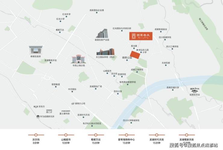 项目雄踞城西中轴,坐享千年人文底蕴与现代产业双重赋能。周边集聚华为、京东方等23家世界500强,毗邻电子科大等19所高等学府,形成人才聚集效应。随着成都智算中心等国家级平台落地,区域发展动能持续增强。