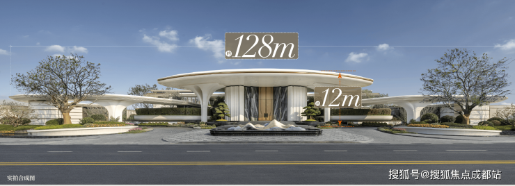 建发海耀的大门做到了近12米高度,近11米悬挑,约58米横向宽度,加上两侧景墙更达到约128米的尺度这不仅是门,这是一座横向跨越专业级足球场长度(约110米)的城市雕塑。
