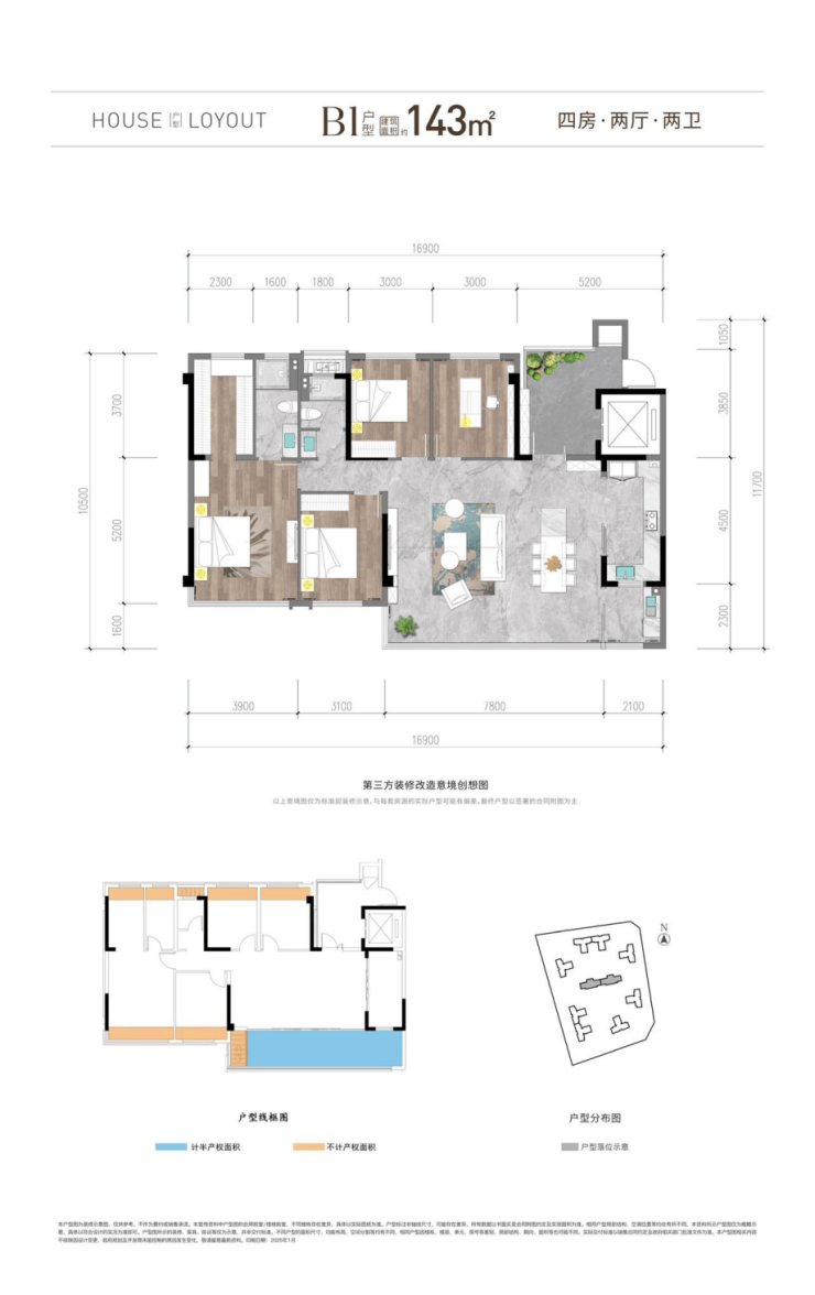 户型区间:建面约103-143m²(含顶跃)