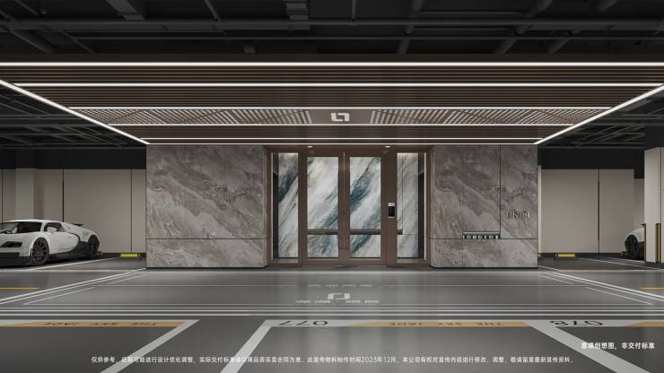 豪华星级公区:在TOP级产品云河颂基础上迭代升级,以蓝眼睛奢石和270°弧形超白玻璃打造入户门头。公区定制陶瓷大板背景墙和巴黎冰玉石材地面;车库归家,打造劳斯莱斯星空顶地下光厅;星级双大堂配置,定制蓝金沙奢石岩板背景墙,采用悬浮吊顶尽显大师手法。