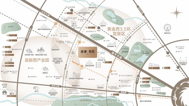 背靠万亿高新西:黄金西3.5环唯一能做到高端人、产、城结合的板块 ,具有超强的虹吸效应。背靠全成都首个GDP破万亿的庞大产业集群——高新西产业园。这里汇聚众多世界500强企业和顶尖大厂: 电子29所、京东方、东方电气、华为、英特尔……更有距离观辰仅2KM的电子科技大学西区科技园,拥享大量高端产业人才,整个板块供给需求、增长空间和发展潜力十分巨大。