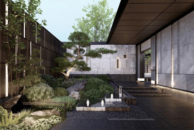 为了营造成都隐奢儫门隐逸、自在、内敛的精神格调,示范区造景选材极其苛刻,每一个精致的细节均兼具功能性与观赏性。整体景观氛围与建筑的设计手法相呼应,置身其中,绿、石、水、建筑融合共生,内与外、生活与自然的隔阂都被消解,到场宾客纷纷对眼前美景表示赞许。
