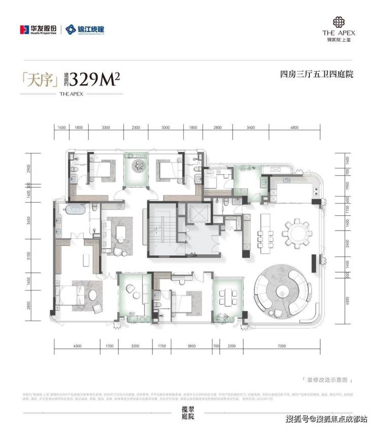 锦宸院·上玺主力户型为190-329㎡的进阶奢宅,实现一梯一户、独立入户光厅、户内多平院空间、多套房等配置。以建面约190㎡户型为例,该户型得房率显著提升,空中庭院从3个增加至5个。
