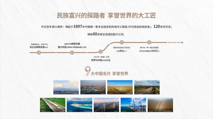 作为国务院国资委直接监管的中央企业,中国交通建设集团位列2023年《财富》世界500强第63位。旗下中交城市投资控股有限公司专注城市综合开发运营,已在全国9省20市布局70余个标杆项目,累计签约额突破5000亿元。