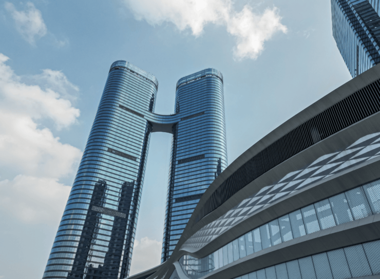 作为主城二环内近十年罕见的超高层地标,项目以约243.9米双塔造型和蓝调镜面玻璃幕墙,塑造鲜明的城市视觉焦点,极大提升资产的辨识度与昭示性。