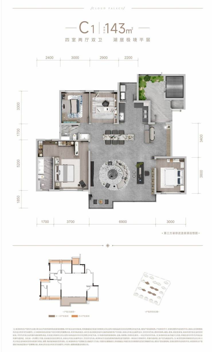 得房率优势:112㎡实得113㎡;128㎡实得133㎡;143㎡实得151㎡