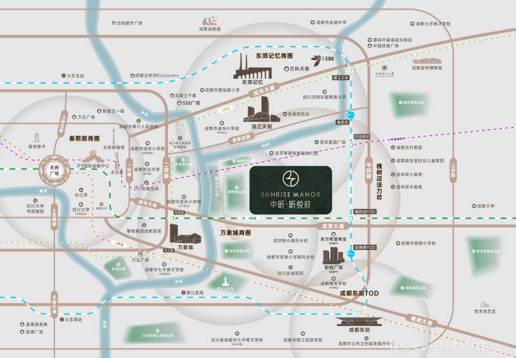 项目坐拥主城密度最高的公园环抱带,地铁4号、7号、12号线三轨交汇,15分钟生活圈覆盖万象城与杉板桥两大商业核心。教育资源配置完善,既有优质学区资源,又规划新建幼儿园与中学,各项配套设施正在快速落地兑现。