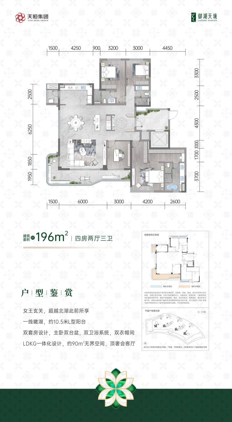 由北京天恒置业倾力打造的「天恒御湖天境」,占地61.7亩,容积率仅1.5,绿化率达30%,打造低密宜居社区。项目规划8栋住宅共220户,配备4栋商业综合体(含商业街区及星级酒店)。住宅均为11层小高层,采用2梯2户设计,公摊19%并赠送12㎡入户空间,实际得房率高达98%。