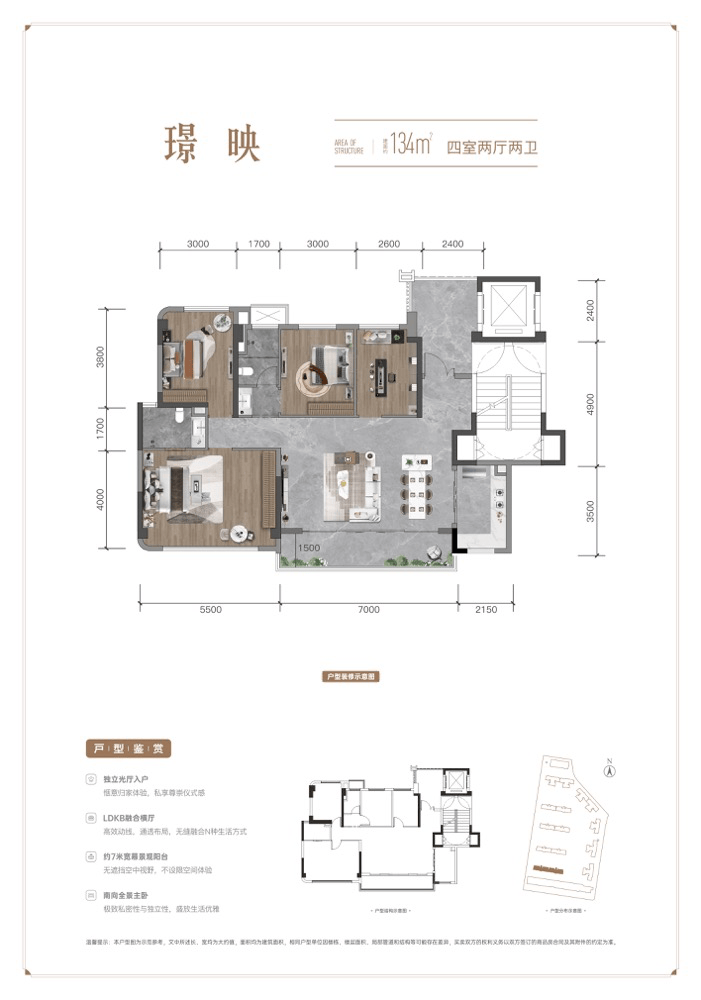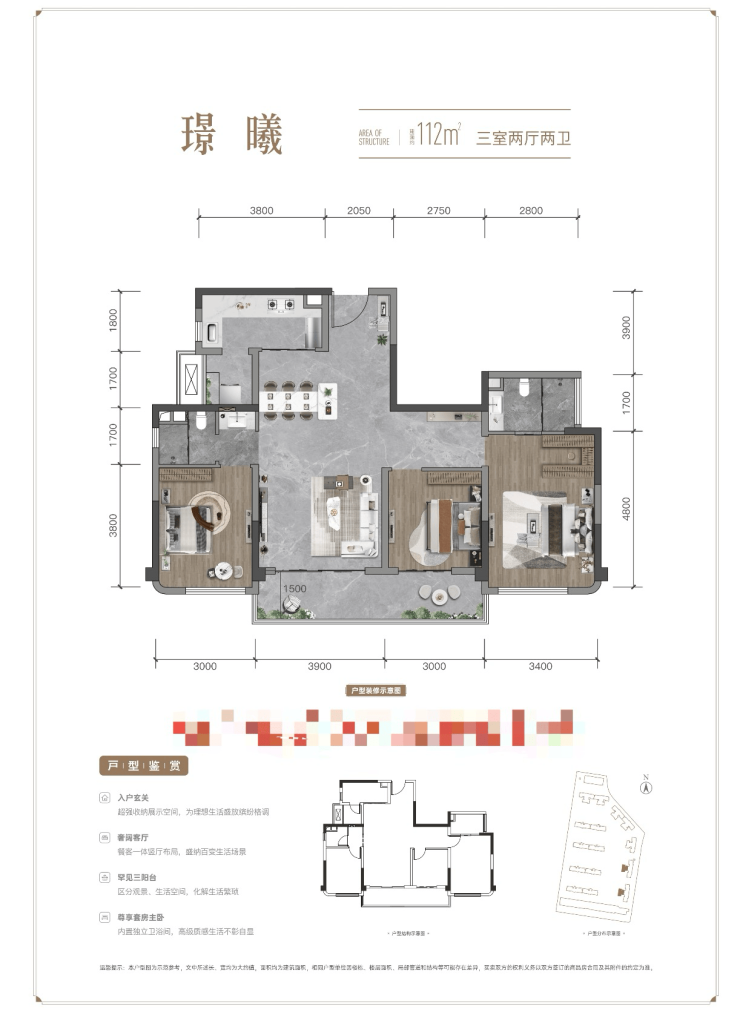 【云栖璞璟】项目亮点颇多。该楼盘占地面积约49亩,由成都蓉华置业发展有限责任公司倾力打造。其建筑风格采用现代公建化设计,精心规划打造了9栋涵盖洋房和小高层的产品。项目推出了首批次房源,预售价处于21578-24470元/m²区间。 项目具体坐落于成华区·荆竹东路·海滨公园旁。在各项指标方面,楼盘单价约2.1万 - 2.3万,总价315万起。容积率为2.0,面积区间在134 - 141㎡ ,楼层涵盖10F、15 - 17F ,总户数达494户。梯户比分别为1T2、2T3 ,绿化率为35% ,车位比为1:1.5 ,物业公司为世茂服务控股有限公司,交房时间定在2027年6月30日。