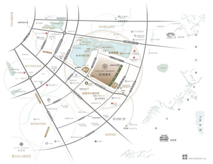 成都未来发展的区域中心——东安湖中心;成都东进桥头堡,东安湖商业活力原点 ;